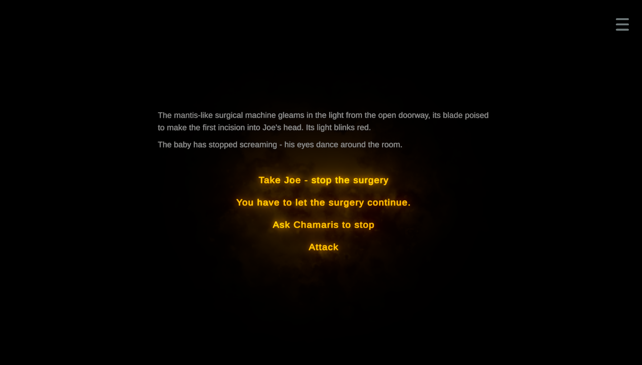 A horror game where you try and save your son as you traverse through a hospital from hell.